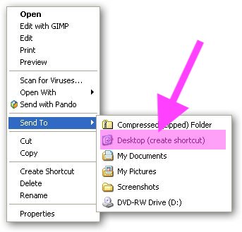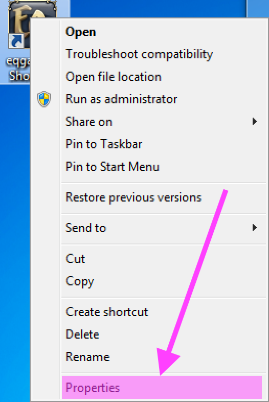 Right-click on the shortcut you created on your desktop, and select the Properties option.