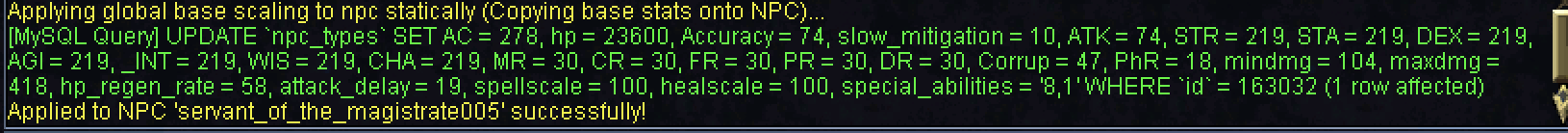 With the above commands, static essentially going to take the scaling profile from the table above and applied it directory to the npc_types